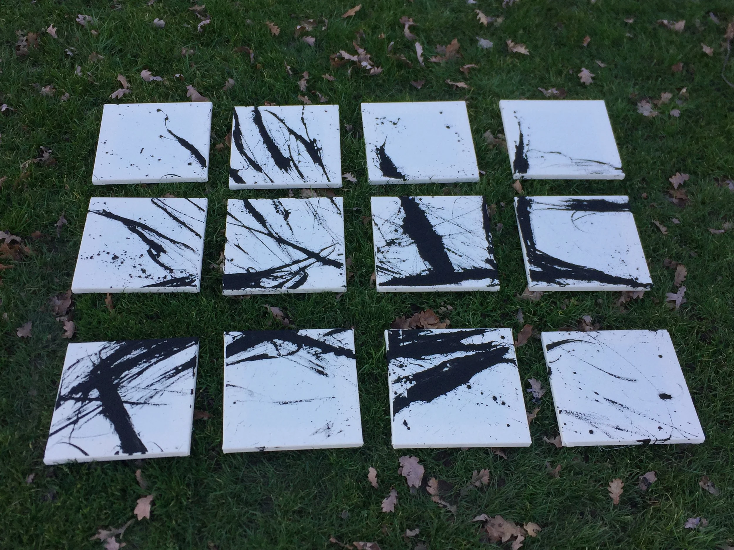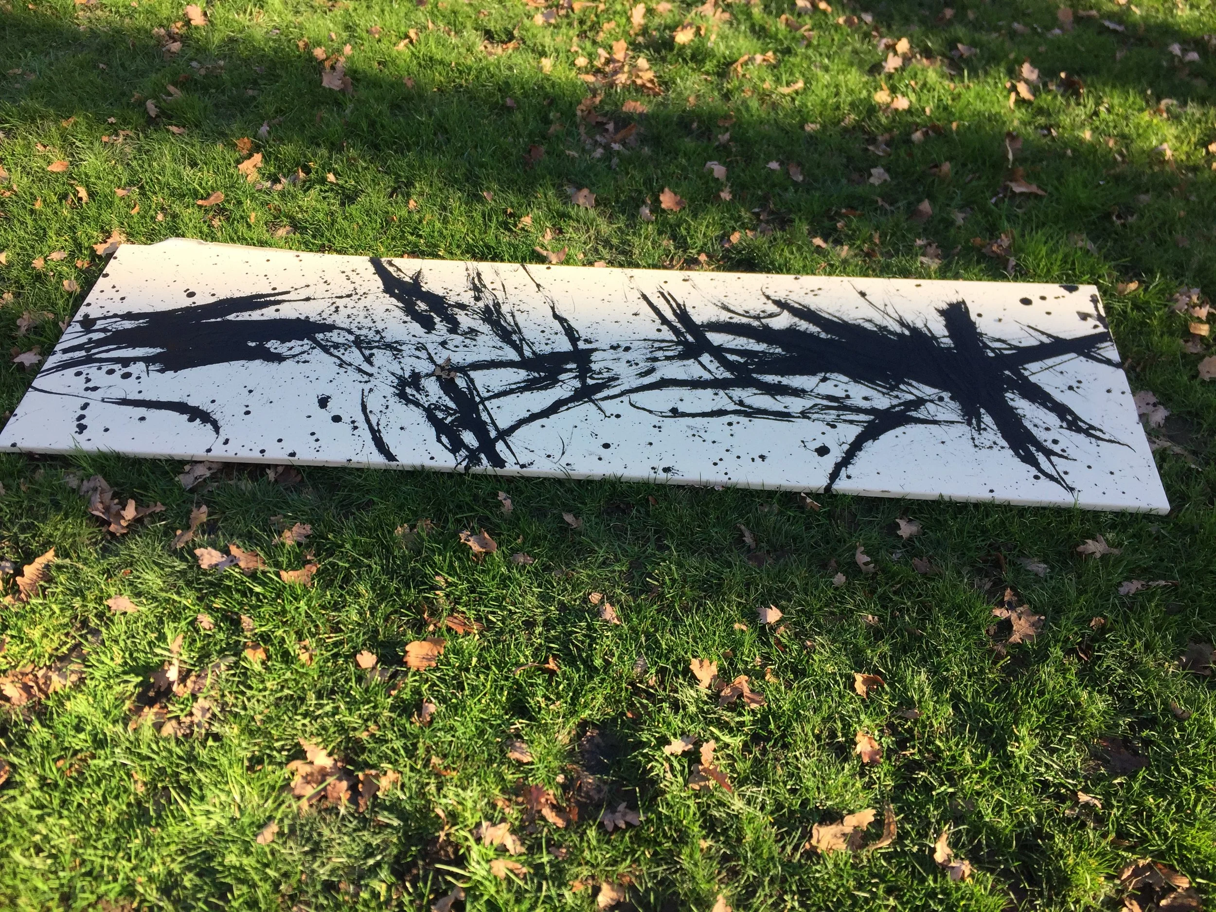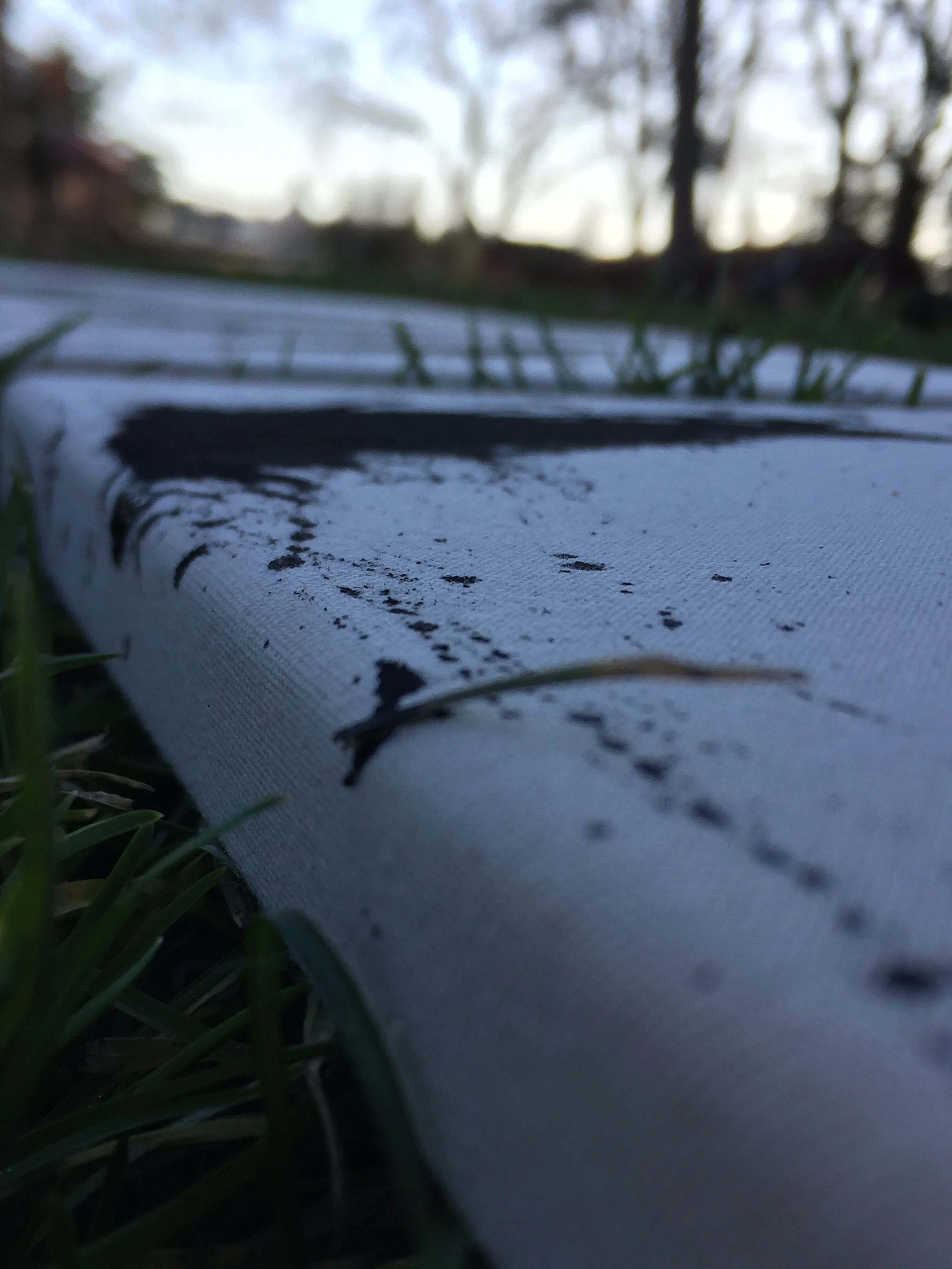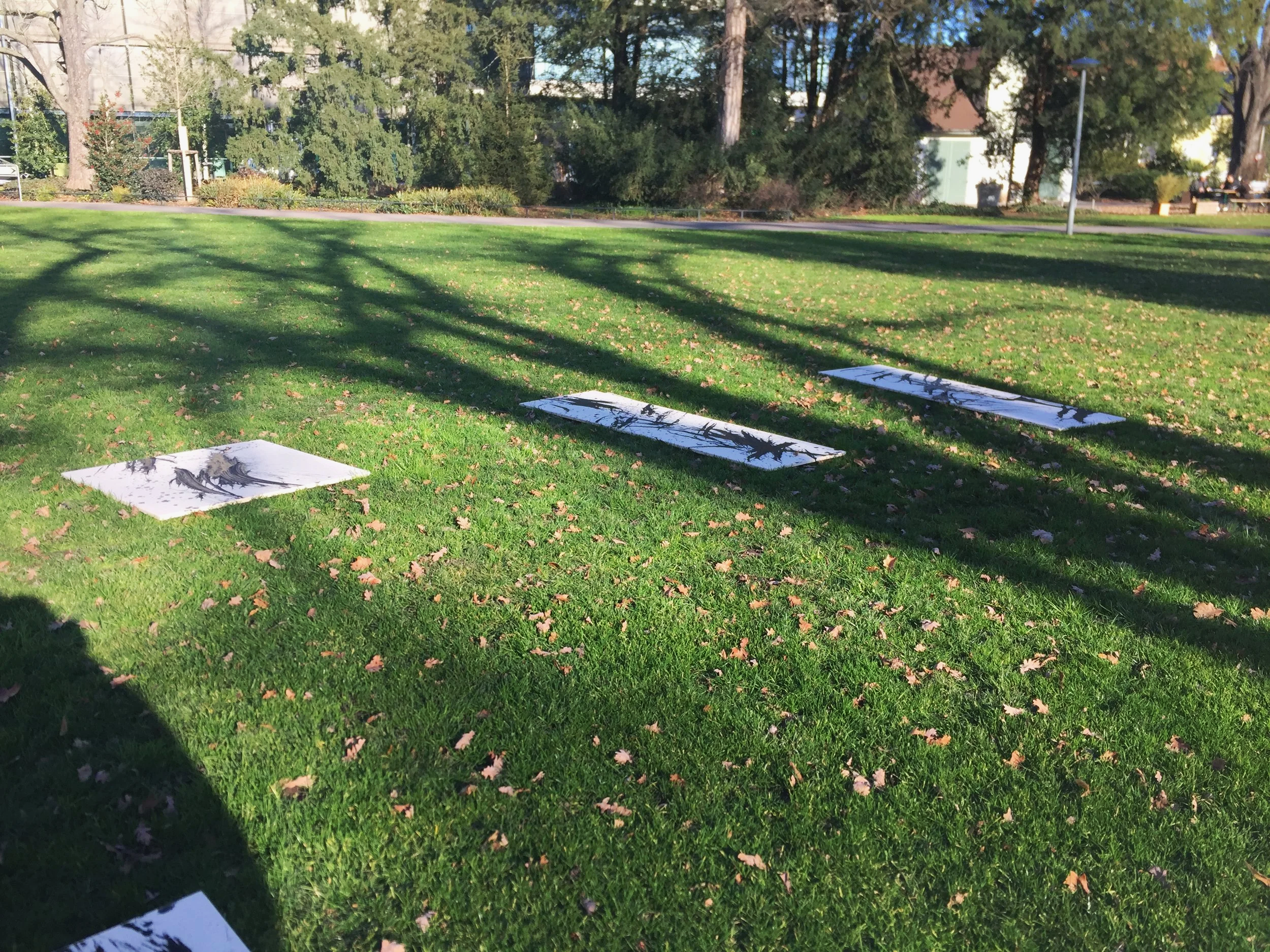 Ich hatte sechzehn Leinwände vorbereitet – sie lagen mit Abstand im Gras: